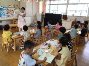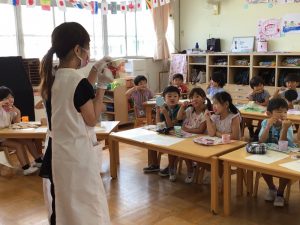 しっかり磨けているか確認をしたり一緒に歯磨きの練習をしたりしました。