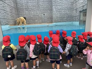 おにぎりを持って、園バスで遠足に行くのは初めてだった子どもたち。