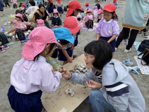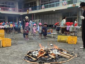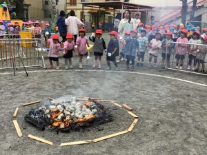 出来上がった焼き芋は、園庭に出てみんなで美味しく食べました♪