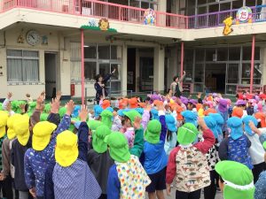 園長先生と3学期もがんばろうの「エイエイオー!」をみんなで元気よくしました!