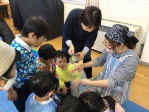 今日は、手作りみそ研究家の田中みゆき先生(通称みそのみゆき)が来園し、みそを作りました!